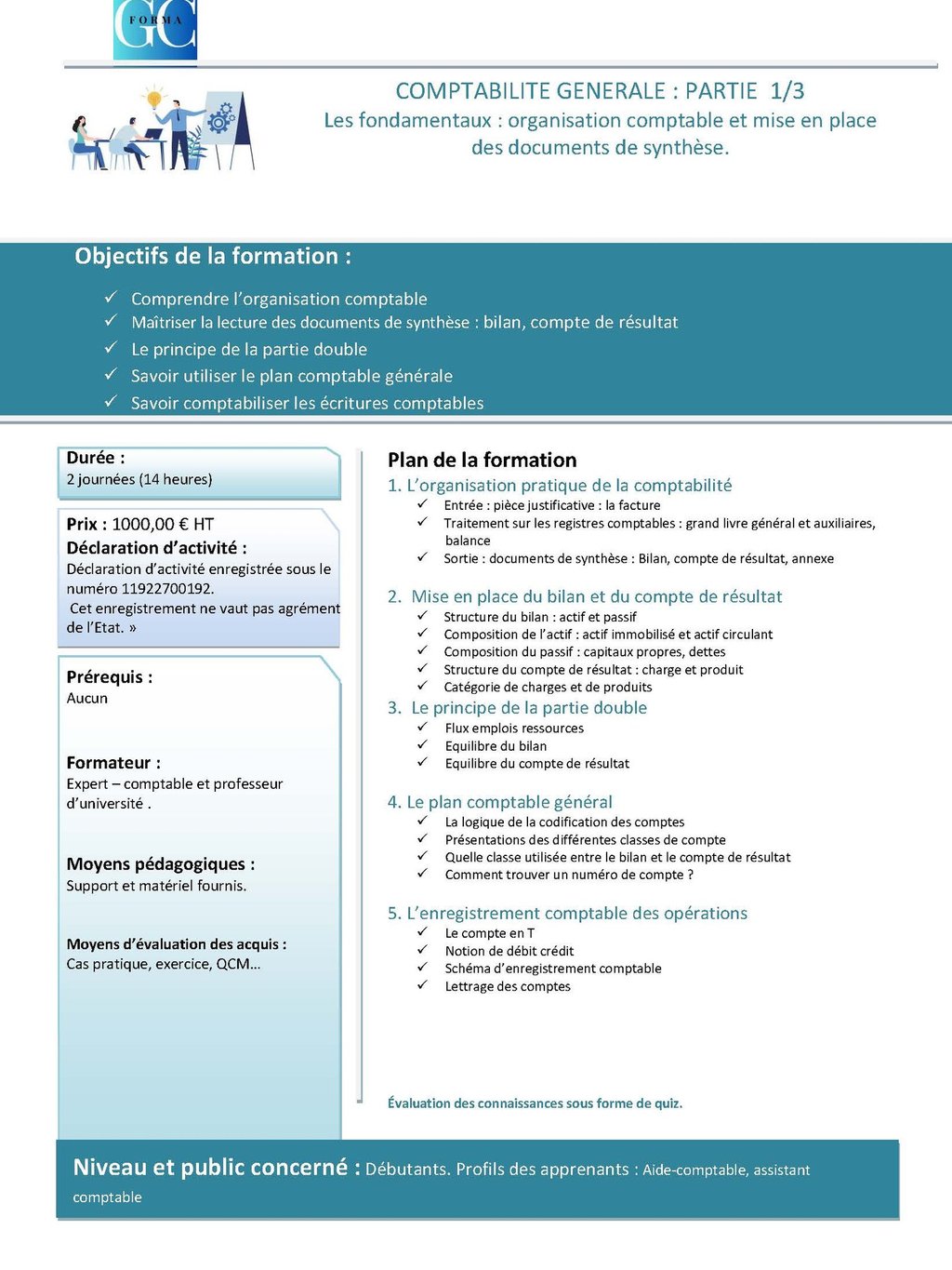 Le module 1 – Fondamentaux de la comptabilité proposé par GC FORMA est une formation complète et accessible à toute personne souhaitant acquérir les bases de la gestion comptable. Ce module s’adresse aussi bien aux débutants, aux auto-entrepreneurs, aux salariés en reconversion, qu’aux créateurs d’entreprise ou professionnels désireux de mieux comprendre la logique comptable.