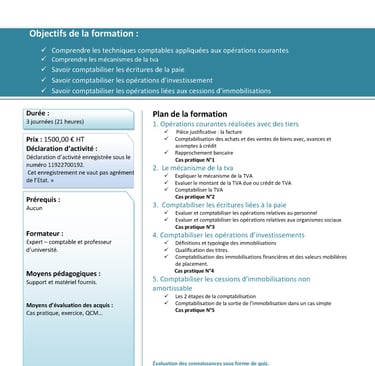 Le Module 2 – Maîtriser la comptabilité de votre entreprise proposé par GC FORMA s'adresse à toutes les personnes ayant déjà acquis les bases de la comptabilité et souhaitant aller plus loin dans la maîtrise des opérations courantes et des obligations réglementaires liées à la gestion d’une activité professionnelle. Cette formation est idéale pour les entrepreneurs, gestionnaires, responsables administratifs ou comptables, ainsi que pour toute personne chargée du suivi comptable au sein d'une TPE, PME ou association.