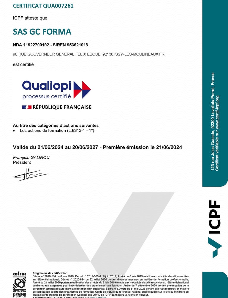 Chez GC FORMA, nous avons à cœur de respecter nos obligations légales et d’agir en toute transparence avec nos visiteurs et apprenants.
